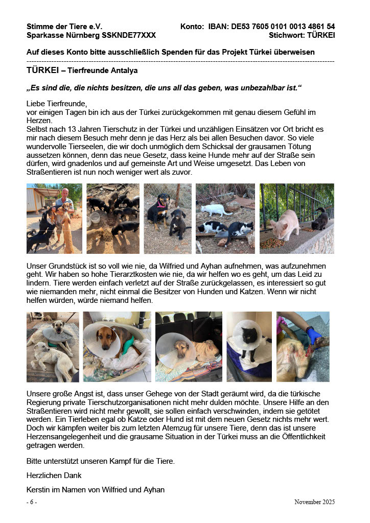 Hier findet Ihr aktuelle Berichte zu der täglichen Arbeit vor Ort in Antalya aber auch Berichte von Tieren die ein Zuhause gefunden haben